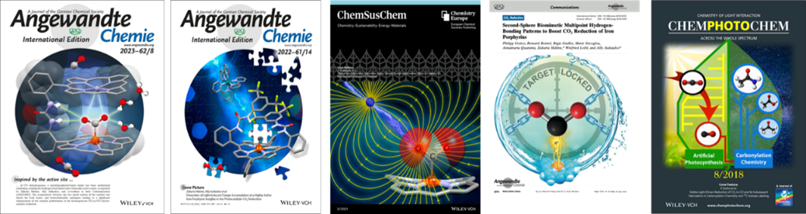 Dans un contexte plus large de transition énergétique, notre équipe s’investit dans le développement de systèmes catalytiques capables de stocker efficacement l’énergie sous forme de liaisons chimiques. En nous inspirant des sites actifs de certaines métalloenzymes, nous cherchons à concevoir des catalyseurs moléculaires performants pour l’activation et la transformation de petites molécules d’intérêt énergétique. Plus particulièrement, nos travaux portent sur des transformations électro- et photocatalytiques pour la réduction du CO₂, la réduction de l’O₂, la production de d’hydrogène ainsi que l’oxydation de l’eau. L’objectif est de comprendre et de maîtriser les paramètres structuraux gouvernant ces transformations afin de proposer des solutions durables et innovantes pour la conversion et le stockage de l’énergie.