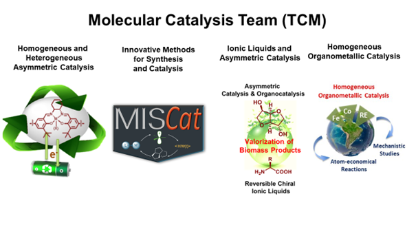 Les recherches en catalyse moléculaires sont organisées en quatre thèmes :
